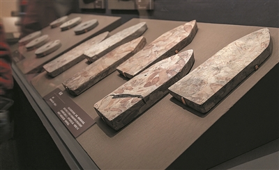 ■琅琊台顶出土的秦代“花斑石”构件(下图),与武王墩楚考烈王墓出土的“花斑石”圭、璧(上图)质地极其相似。