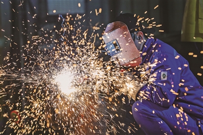 ■在青岛电站阀门有限公司,节后复工的工人在生产车间内焊接作业。 张 鹰 摄