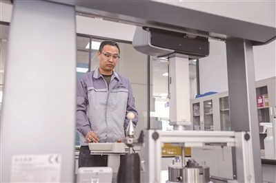 ■在李沧区国华具身智能产业园,技术人员仔细检测机器人零部件。 张 鹰 摄