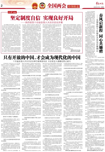 发展全过程人民民主是中国式现代化的本质要求。群策群力、同向同行,凝聚人心,凝聚共识,凝聚智慧,凝聚力量,正是中国式民主的显著优势。人民代表大会制度是实现我国全过程人民民主的重要制度载体。坚持好、完善好、运行好人民代表大会制度,密切联系人民群众、倾听群众呼声、反映群众意愿,把各方面智慧和力量凝聚起来,动员全国各族人民全面贯彻落实党中央决策部署,扎实做好全年各项工作,定能为“十五五”开好局起好步提供有力支撑。期待广大代表提高政治站位,忠实履行法定职责,讲实话、道实情、出实招,集思广益、凝聚共识、广谋良策,为党和人民履好职、尽好责。