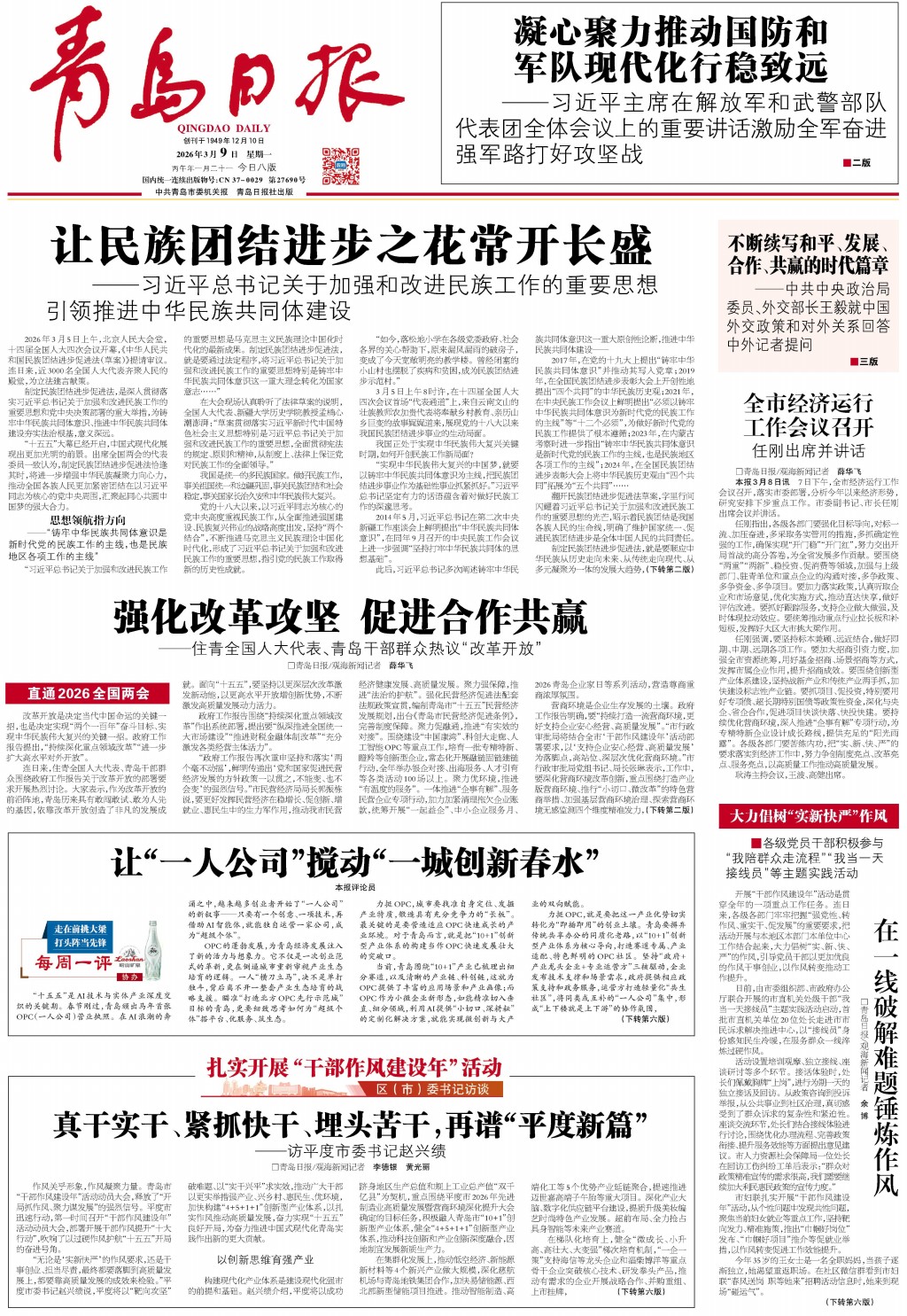 01 首版 02 全国两会 03 全国两会 04 要闻 05 要闻 06 城事 07 艺术青岛 08 城市艺术