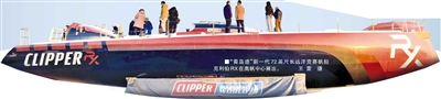 ■“青岛造”新一代72英尺长远洋竞赛帆船克利伯RX在奥帆中心展出。 王 雷 摄