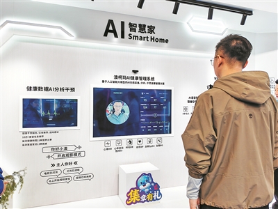 ■观众在澳柯玛智慧客厅体验AI健康管理系统。 杨 光 摄