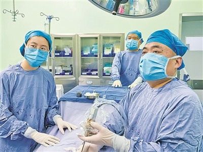 ■庞太忠教授(右一)带领团队为患者手术。