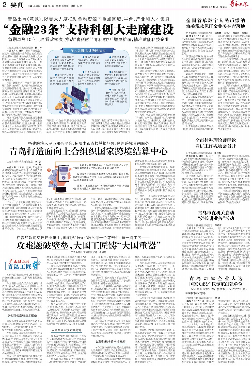 01 首版 02 要闻 03 青报聚焦 04 国内 05 城事 06 学习论丛 07 法治 08 琴岛
