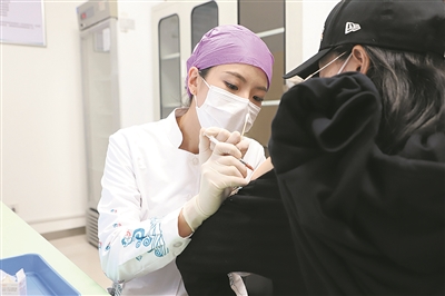 ■在HPV疫苗接种及宫颈疾病一体化诊疗中心,护士为市民接种疫苗。