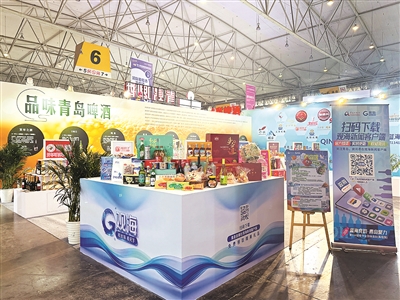 3月26日至28日,第114届全国糖酒商品交易会在成都举行。图为青岛馆展台一角。