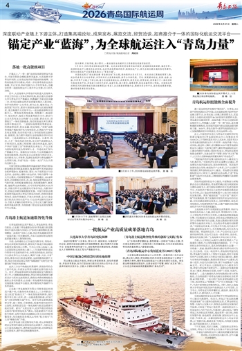 3月30日,2026青岛国际航运周开幕。此次活动既是青岛落实海洋强国、交通强国战略部署,推进世界一流国际航运中心建设的生动实践,也是青岛深耕海洋经济、做强航运产业、深化全球互联互通的标志性事件,将为全球航运产业高质量发展注入“青岛力量”。