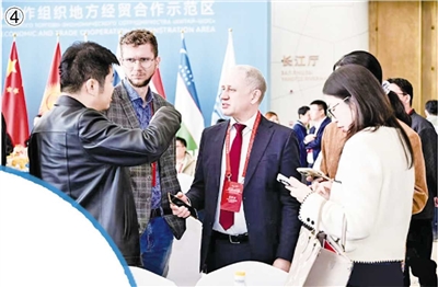 ④客商在“出口中国·上合甄选”进口商品采购对接会上洽谈。