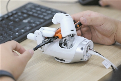 ■青岛职业技术学院的学生调试智能机器人“灵巧手”。韩 星 摄