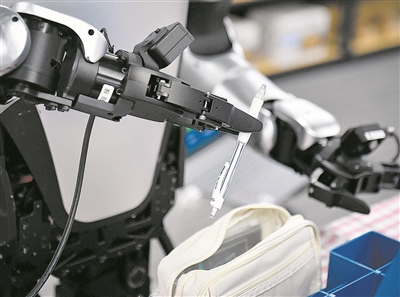 ■机器人捏起签字笔,精准放入笔袋。韩 星 摄