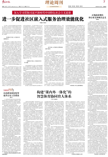 第三,加强条线合作,提升社区嵌入式服务供给专业化。应坚持整体性治理视角,建立由街道党工委牵头,涉及民生服务的多个条线部门共同参与的常态化联席会议机制,在社区嵌入式服务设施建设前期提前规划好符合社区居民需求的民生服务项目,并就医养结合、运动健康、托幼科教等跨条线领域项目的业务管理形成共建合作机制,进一步加强不同业务部门间的协同性,实现嵌入式服务的治理精细化。例如,上海市徐汇区通过党建引领,打造“邻里汇·生活盒子”,实现了医养服务、儿童服务和便民服务的整合嵌入,提升了社区服务一站式供给效能。随后,进一步明确嵌入式服务设施在后期运营、维护各环节的权责清单,弥合不同业务条线间的治理间隙。