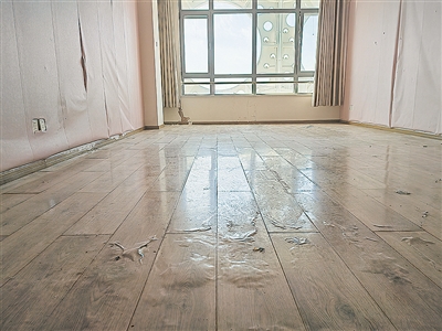 ■杨先生的房子被水浸泡后地板和墙面受损。