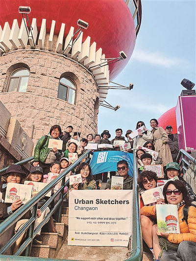 这一天,速写青岛的周末写生活动迎来了8位特殊的客人——从韩国昌原专程赶来的画友。不同语言、不同画风,却在同一片天地下,安静地勾勒着各自眼中的青岛。