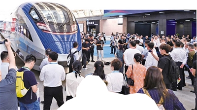 ▲首列中国标准智能市域列车亮相2025中国国际城市轨道交通展览会。