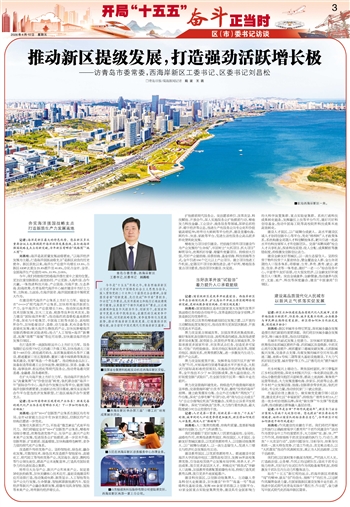 站在“十五五”新征程的起点,西海岸新区将提振“闯”的精神、鼓足“创”的劲头、锤炼“干”的担当,以过硬作风凝聚奋进力量,在国家级新区建设发展中走在前、在推进中国式现代化青岛实践中“勇担当、作示范”,奋力谱写中国式现代化西海岸新区篇章。