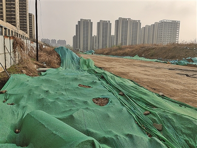 ■城南路未完工,部分施工区域覆盖抑尘网。