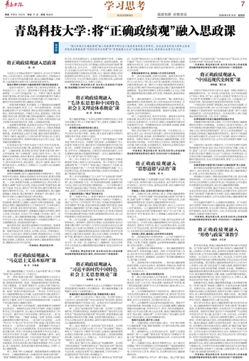 “树立和践行正确政绩观”融入思政课学术研讨会日前在青岛科技大学举行。会议由青岛科技大学和山东省学校思政课教指委“中国近现代史纲要”和“思想道德与法治”分教指委联合举办,现将部分成果予以刊登。