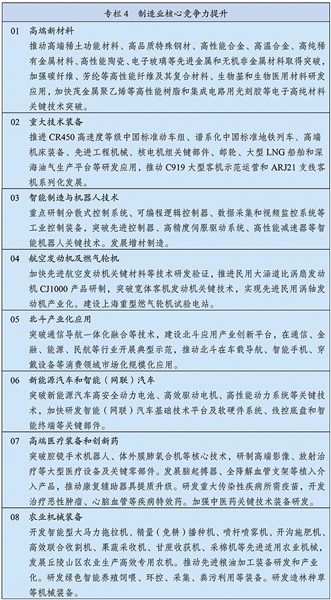 深入实施智能制造和绿色制造工程,发展服务型制造新模式,推动制造业高端化智能化绿色化。培育先进制造业集群,推动集成电路、航空航天、船舶与海洋工程装备、机器人、先进轨道交通装备、先进电力装备、工程机械、高端数控机床、医药及医疗设备等产业创新发展。改造提升传统产业,推动石化、钢铁、有色、建材等原材料产业布局优化和结构调整,扩大轻工、纺织等优质产品供给,加快化工、造纸等重点行业企业改造升级,完善绿色制造体系。深入实施增强制造业核心竞争力和技术改造专项,鼓励企业应用先进适用技术、加强设备更新和新产品规模化应用。建设智能制造示范工厂,完善智能制造标准体系。深入实施质量提升行动,推动制造业产品“增品种、提品质、创品牌”。