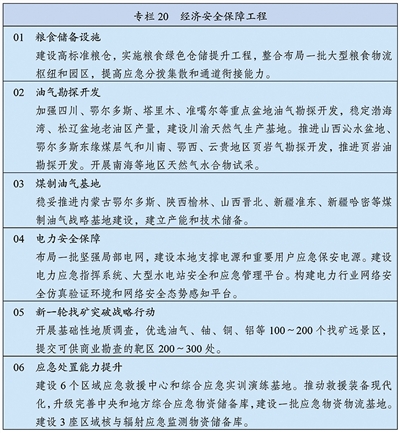 强化经济安全风险预警、防控机制和能力建设,实现重要产业、基础设施、战略资源、重大科技等关键领域安全可控,着力提升粮食、能源、金融等领域安全发展能力。