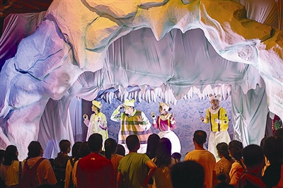 儿童剧进景区 日前,以海洋保护为主题的儿童剧《不应该的相遇》在极地海洋世界维京舞台上演。剧情中,自然环境被破坏后,南极的企鹅和北极的熊在舞台上相遇了。被塑料袋缠住的北极熊、找不到食物的企鹅、演员的生动表演引得台下观众发出阵阵笑声。而在欢笑声后,观众们也认识到了保护海洋生态的重要性。据悉,该儿童剧将演到8月底。