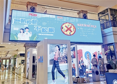 不少商超还在室内及室外充分利用LED屏幕传递疫情防控要求,提高场内员工及顾客的疫情预防意识。刘夏所在的利群金鼎广场就是其中之一。据刘夏介绍,疫情发生以来,商超利用广告大屏播放跟疫情防控有关的公益信息的创新举措引来众多消费者点赞。
