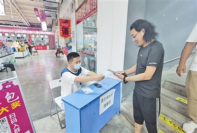 “疫情防控常态化,大家是不是都懈怠了?”“哪儿能,这不是胡闹么?你瞅瞅市场上,除了极个别人不戴口罩,大多数市民都自觉着呢!”在与刘光交流过程中,这个原本应由刘光回答的问题,被顾客王女士“截和”,她说:“市场管控到位了,市民采购也更安心一些。”