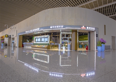 三家TSINGTAO 1903青岛啤酒吧入驻新机场,店旁就是登机口