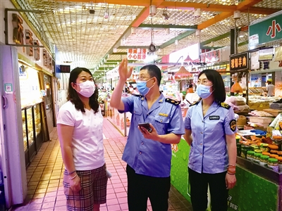 李沧区市场监督管理局创新工作思路,赋予创城工作更多民生情怀,助力农贸市场“颜值”“内涵”双提升。统筹开展农贸市场卫生大整治行动,加强公厕、水池等基础设施清洁消毒,及时清运垃圾,保持市场整体卫生整洁,做好疫情防控。全面开展食品安全“三小”大排查专项行动,进一步规范业户经营资格。聚力开展农贸市场大提升行动,组织李村大集、东李百姓家农贸市场纳入市办实事进行升级改造,指导向阳易方、达翁、板桥、润来通、湘潭路等5家农贸市场进行自行改造。