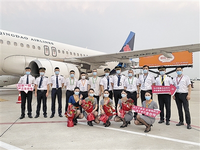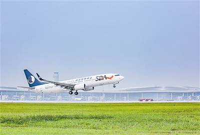 | ■8月12日9时11分,山航SC4651航班成功首飞。 刘 栋 摄 |