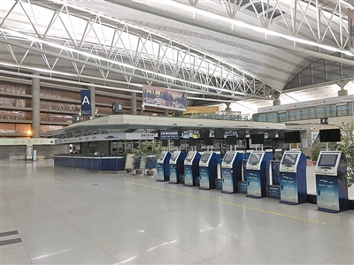 | ■8月11日22时许,流亭机场二楼设备已经全部关闭。 柳 栋 摄 |