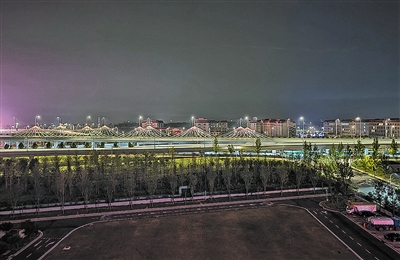 | ■8月11日23时许,胶东机场周边灯火辉煌,迎接投运首日的到来。 刘 栋 摄 |