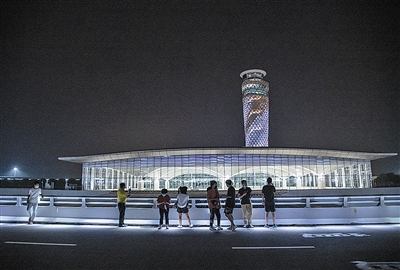 | ■8月11日24时,夜色中的流亭机场。 宋新华 摄 |