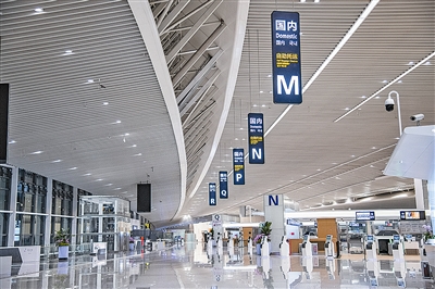| ■8月12日4时许,胶东机场航站楼整装待发,静候客来。 刘 栋 摄 |