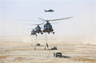 上午10时20分许,在军委导演部导控指挥下,双方动用兵力1万余人及多型飞机、火炮、装甲车辆等主战装备,区分先期联合防抗、综合毁瘫体系、高速立体攻击、纵深清剿追歼4个阶段,圆满完成演习任务。