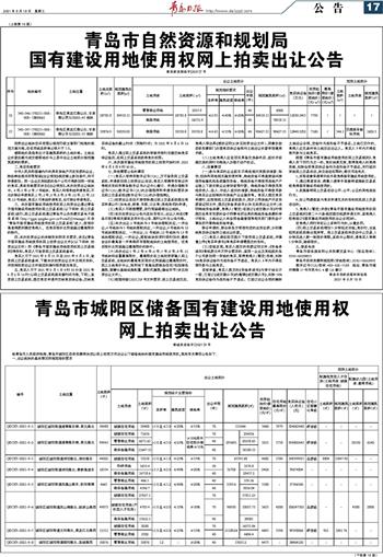 青岛日报 公告 17 2021-08-181 2021年08月18日 星期三