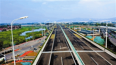 此外,作为我市交通基础设施建设攻势三大关键节点工程之一的环湾路—长沙路立交桥工程也正在加紧建设。截至目前,跨环湾路钢箱梁施工已完成,主体工程完成约65%,剩余工程按计划推进,项目建成后将有效解决欢乐滨海城周边约4万居民的出行难题。