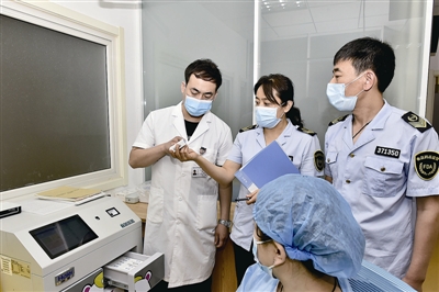 酷暑时节烈日炎炎,在大港的码头上,一群穿着防护服、戴着口罩和防护面屏的“大白”坚守阵地严阵以待,准备为抵港作业的国际船舶做入境检查。这里是岛城外防输入第一线的三处港口转运点之一,由边检、海关、海事、市北海港管控部和青岛港等联合组成一道坚实的抗疫屏障,肩负起大港港区所有船舶入境人员的疫情防控工作。