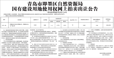 青岛市即墨区自然资源局国有建设用地使用权网上拍卖出让公告