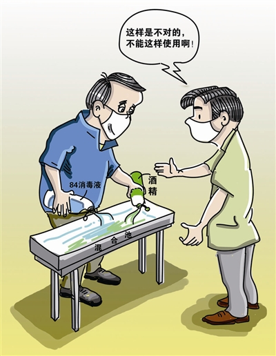专家:两种及以上消毒剂混合使用极易产生化学反应,可能造成伤害。84消毒液和酒精混合后产生的有害气体会刺激并损坏呼吸道,当浓度达到3000毫克/立方米时,能致人死亡。84消毒液与洁厕剂混合会产生有毒气体,刺激人体咽喉、呼吸道和肺部而引发中毒。洗衣液同样不宜与消毒剂混合使用。