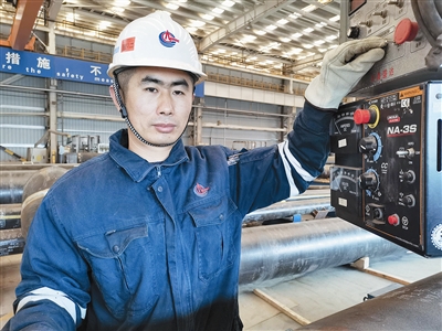 工作之余,他喜欢鼓捣点“新东西”。他研制的“移动式埋弧焊管焊机”破解了埋弧焊大管径焊接难题,还完成了“焊接防变形调制装置”和“管件打磨辅助装置”等多项技术革新,累计为各项目节省成本3000多万元。多年来,他带出了7个徒弟,为公司培养“嘉克杯”国际焊接技能大赛冠军1名、亚军1名,培养技师3名、高级工4名。
