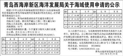 青岛西海岸新区海洋发展局关于海域使用申请的公示