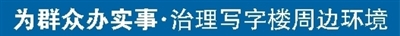 对此,写字楼周边居民和楼内企业职员建议相关部门加强对写字楼周边环境的管理,补齐街区管理的短板、漏洞,为楼宇经济发展提供良好的外部环境。