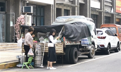 8月24日,记者前往镇海路、凤城路周边实地探访。在镇海路、敦化路路口南侧,一名流动商贩将货车停在车位上,并打开了车厢后挡板,正在售卖西瓜。在卖瓜货车南侧50米处,另一个车位也被占用作为摊位,摊主不仅在此售卖水果,还堆放了纸箱、篮筐等杂物。“设置公共车位的目的是方便市民停车,现在却被用来摆摊,我们找个车位停车难上加难。”陆先生介绍,两处车位长期被占,但始终没有执法人员前来整治。