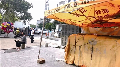 记者留意到,在通往医院东门的人行道上,多个写着“问健康、算命运”的卦摊在路边占路经营,摊主不时向进出医院的市民招手揽客。靠近医院门口的人行道更是路堵难行:卖气球的游商浮贩、乱停的外卖电动车、商贩三轮车等杂乱无章,将人行道重重阻隔。医院大门右侧挂着“全国模范爱婴医院”“青岛市涉外定点医院”的铭牌,铭牌前的人行道被一个4米见方的遮阳棚占据,遮阳棚下堆放着游商浮贩的小货车等物品,盲道也被压在小货车下面,进出医院的市民只能从剩余一米多宽的人行道上绕行。