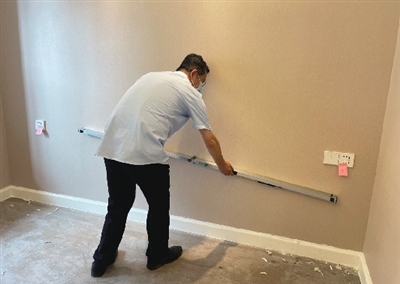 在验房过程中,经常会看到这样的画面:验房师拿着小锤不断敲击墙面,仔细辨别敲击的声音。如果发出沉闷的声音,大概率就是出现了“空鼓”问题。空鼓是什么?空鼓是由于原砌体和粉灰层中存在空气引起的,检测的时候,用空鼓锤或硬物轻敲抹灰层及找平层发出咚咚声为空鼓。房屋质量中的“空鼓”一般是指房屋的地面、墙面、顶棚装修层(抹灰或粘贴瓷砖)与结构层(混凝土或砖墙)之间因粘贴,结合不牢实而出现的空鼓现象,俗称“两层皮”。薛工告诉记者,墙面空鼓在验房过程中最常出现问题。通常卫生间和厨房的瓷砖下最容易出现空鼓的问题。有些时候地板下面也会有,甚至毛坯房也会出现空鼓的问题。如果是粉刷的墙壁出现空鼓,将来可能出现墙面开裂、墙皮脱落的问题。但如果是卫生间的瓷砖下出现空鼓,则可能存在安全隐患。在一次验房过程中,薛工就曾发现卫生间瓷砖存在大面积空鼓的问题。“卫生间相对比较潮湿,这种环境下如果瓷砖贴得不牢固就更容易脱落,特别危险。”薛工介绍,很多空鼓的瓷砖正好位于窗台正上方,或者是淋浴房的上方,一旦脱落很容易伤到业主。