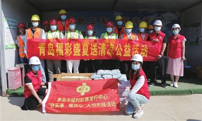 收到清凉礼包的青岛地铁四号线施工人员张晏说:“感谢青岛福彩为我们现场施工人员送清凉,毛巾、冰袖、矿泉水等对现场施工来说都可以用到,非常实用,收到这些物资我们也都很开心。”