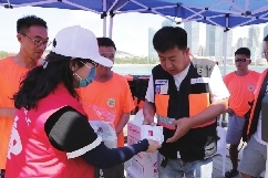 活动的最后一站,青岛福彩志愿者一行来到位于太平角四路与湛山五路交叉路口的海上救援队工作地点,为海上援救人员继续送清凉。青岛作为国内知名的海滨城市,每到夏季,辽阔的大海、细腻的沙滩都吸引着无数游客慕名而来。因为不了解大海的习性,不少外地游客常常会因风大浪急等原因遇险。每遇险情,青岛海上救援队的队员们就会第一时间承担起救援任务。据悉,青岛海上救援队每年实施青岛沿海一线游客溺水救生救援可达上百次。