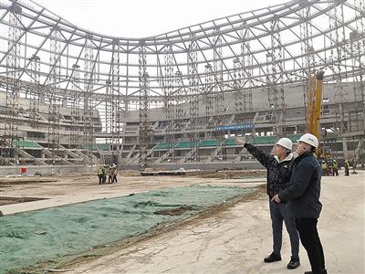 1月25日,国家体育总局通过官方网站公布了“十四五”期间首批全国足球发展重点城市,青岛等9个城市入选。日前,记者在亚洲杯青岛青春足球场建设工地看到,春节临近,这里的200多名建设者依旧坚守一线、攻坚冲刺,目前正在加紧进行索结构施工等,足球场的外形已经完全显现。