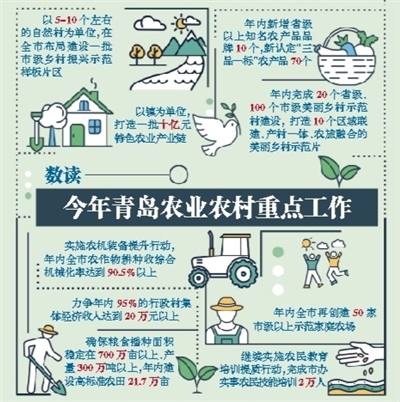 作为典型的“大城市、大农村”格局,青岛全市10个区(市)中,7个是涉农区(市)。广袤的地域、众多的农村人口,为青岛推动农业农村发展提供了空间。全市农业农村系统将事争一流、唯旗是夺,持续发力、久久为功,争创一批全国制高点,推出一批代表青岛农业农村发展水平和乡村振兴齐鲁样板路径的先进典型。